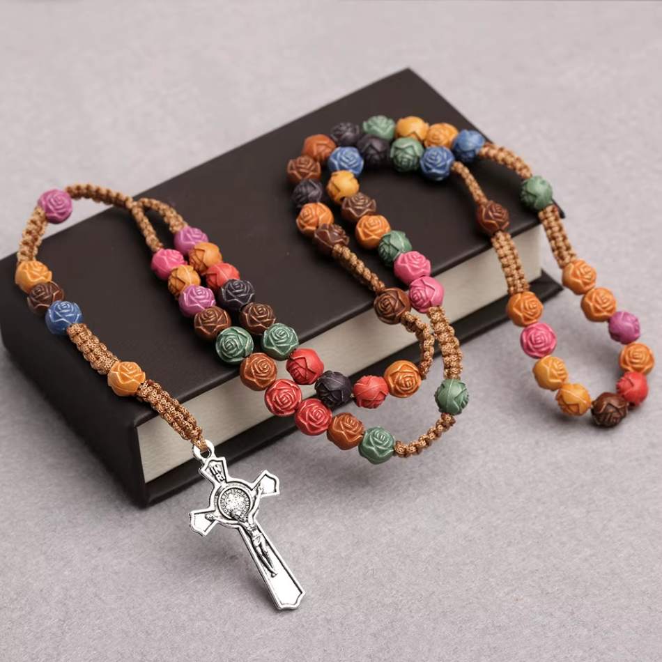 Ele representa fé, entrega e proteção espiritual, unindo a delicadeza da rosa à força da cruz.